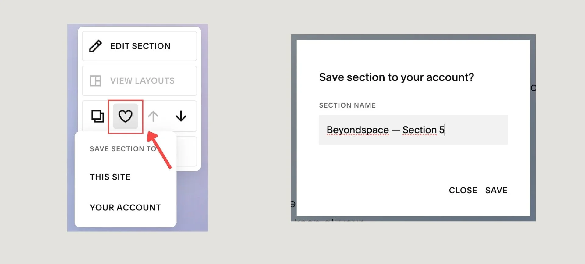 Effortless to Use: Simply hover over any section in edit mode and click the heart icon to save it.