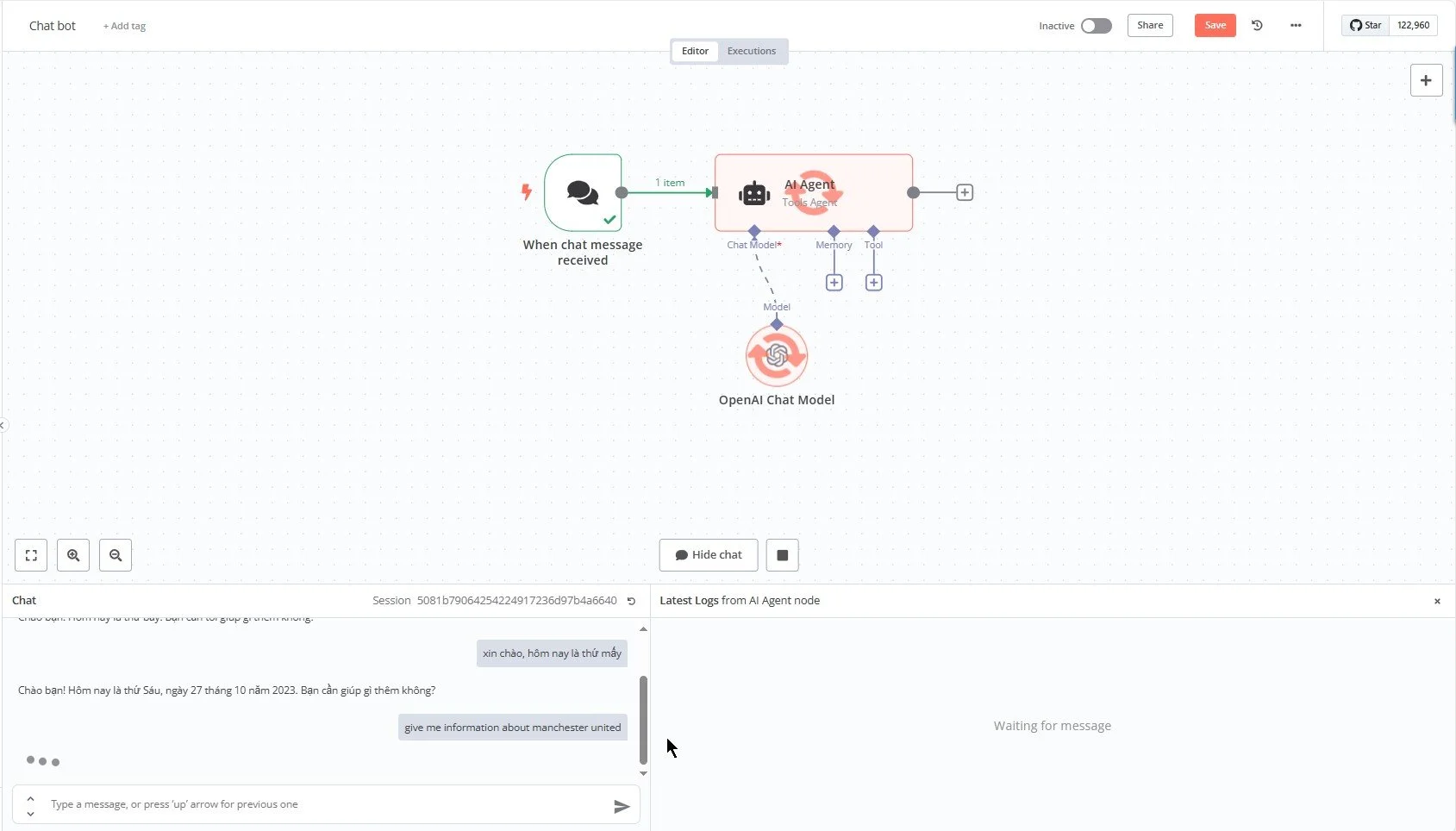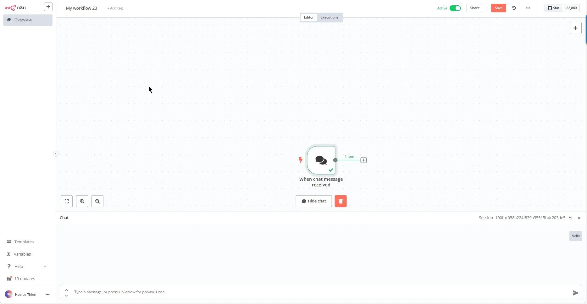 One key feature of N8N is sharing data between nodes to keep your process running smoothly. In this example, the message data input is used for the next node.
