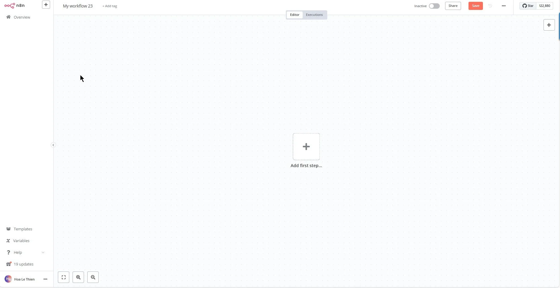 We can use N8N either with the cloud version or by self-hosting it on your own server. In this post, we assume that you have already registered an account in order to access N8N. After logging into N8N, here is the general interface that you will use to work with the platform.