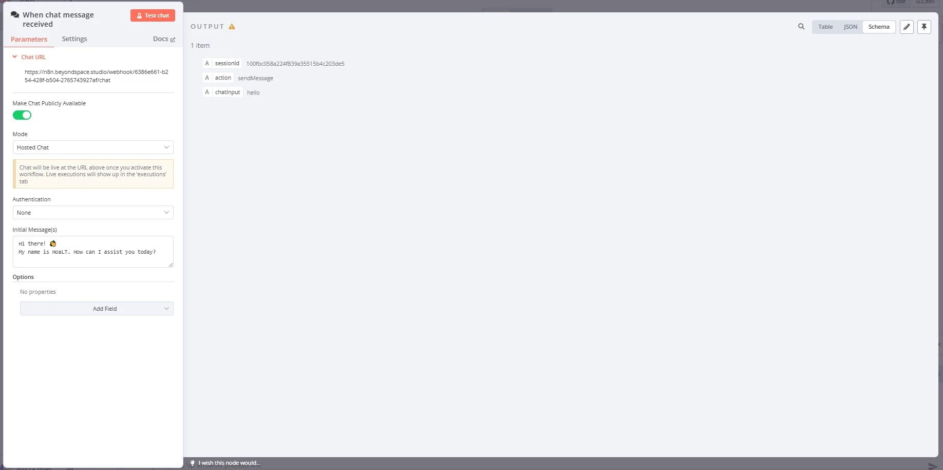 On chat message: triggers when a message is sent via N8n chatbox in your workflow