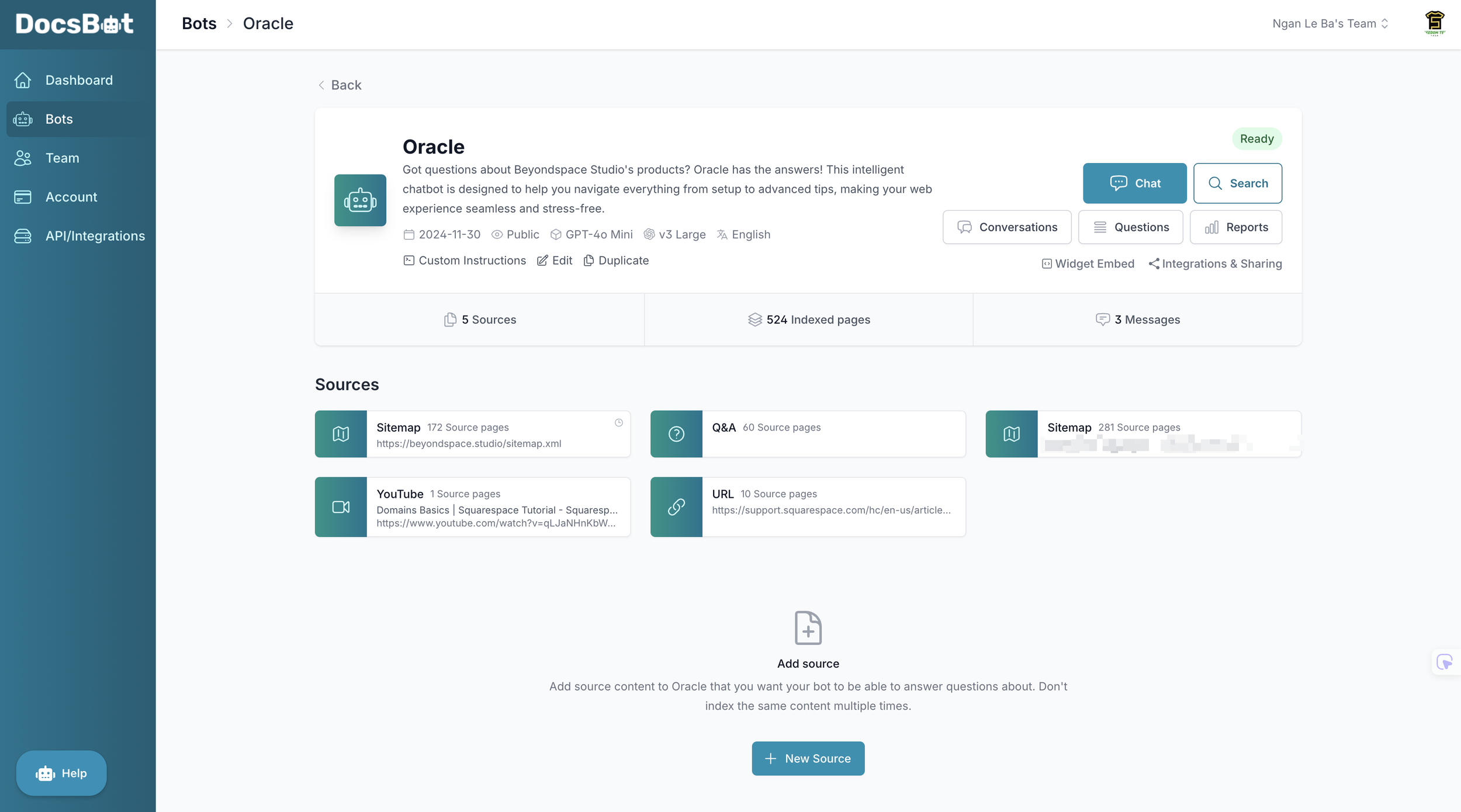 Next, and this is a crucial habit, I check the logs on our DocsBot questions. This is my secret weapon. Seeing the questions users ask our documentation bot tells me two things: