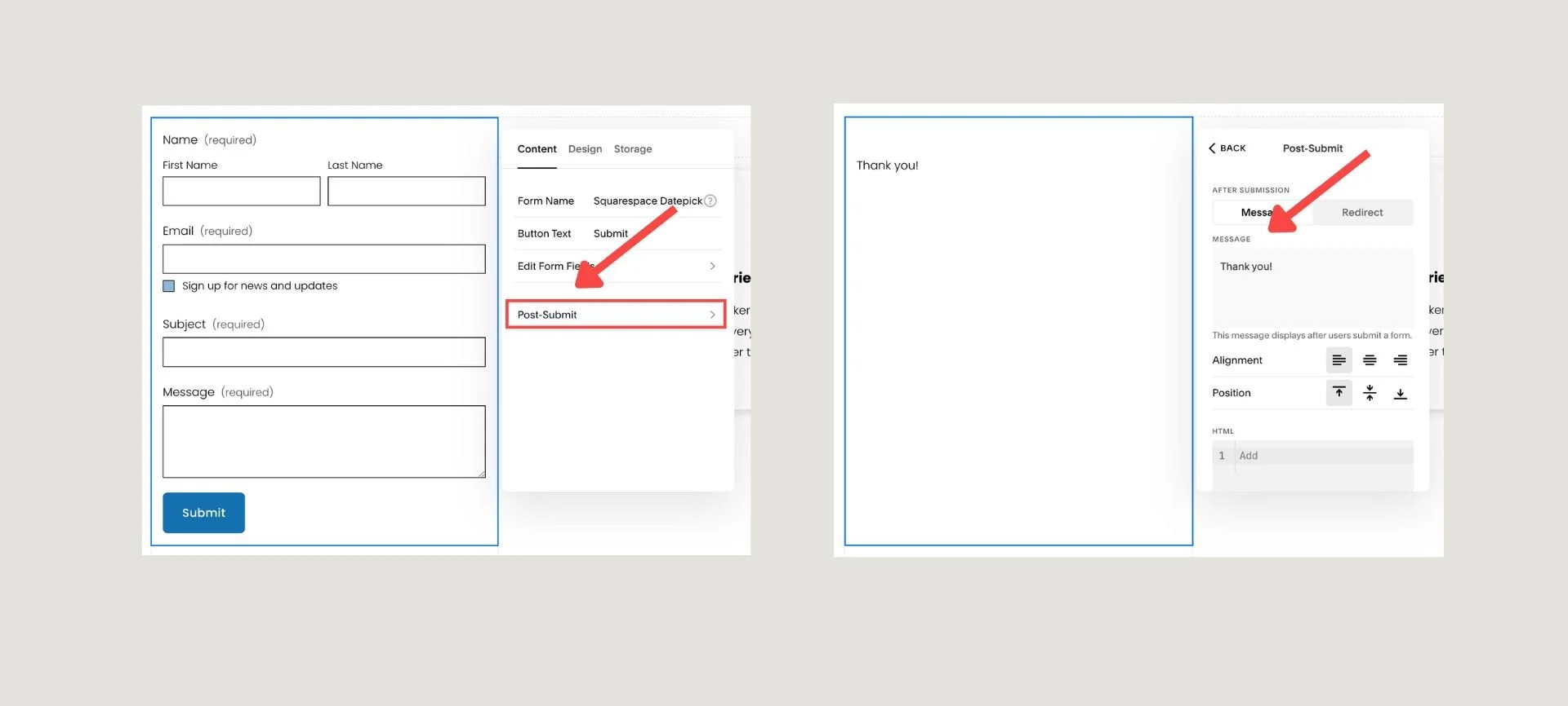 Once a visitor submits a form, you can control what happens next to guide them seamlessly through your site.